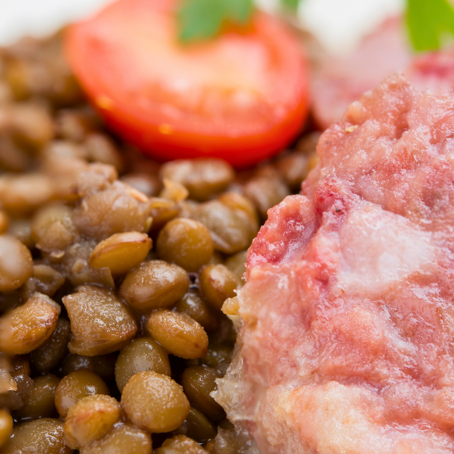 Il piatto tradizionale delle feste, con cotechino zampone, è perfetto se accompagnato da lenticchie e zampone o dal classico abbinamento di lenticchie e cotechino, simbolo di buon augurio quando si festeggia il nuovo anno