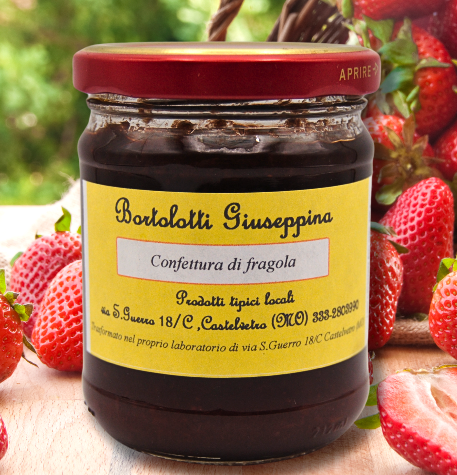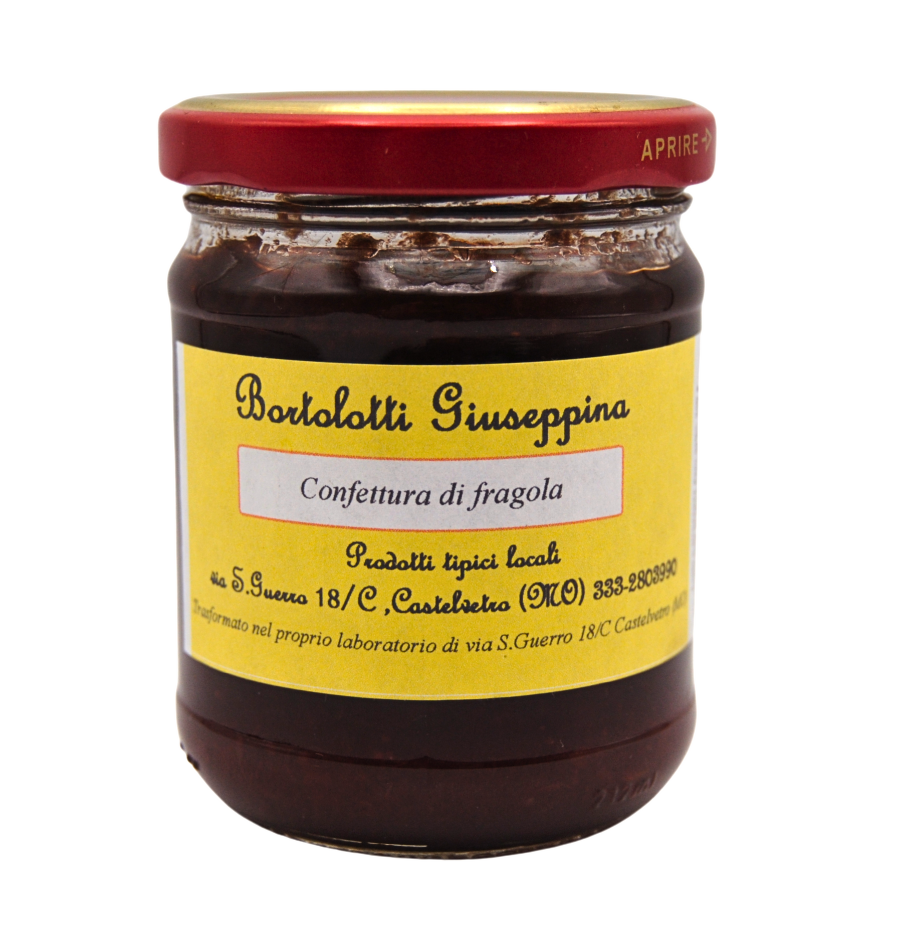 Le fragole, selezionate con cura ,  vengono lavorate da questo piccolo produttore artigianale sulle colline di Castelvetro alle porte di Modena,  in modo tale da conservare intatto  intatti il loro gusto e profumo. Il risultato è questa confettura dalla consistenza vellutata : una vera esplosione di sapore. Ottima abbinata al Parmigiano, oppure su una fetta di pane tostato per una gustosa prima colazione